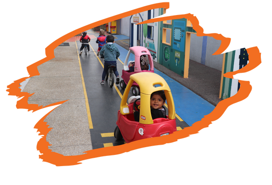 Creamos espacios llamativos para que nuestros niños se diviertan tomando diferentes roles, aprendan cómo funciona el mundo real y por medio de bicicletas y carros especiales disfruten al aire libre cada espacio pensado en ellos y continúen explotando toda su creatividad e imaginación en esta pequeña mini ciudad.